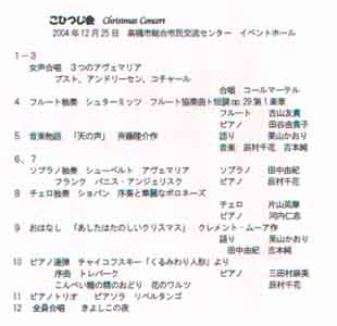 こひつじ会 ChistmasConcert 投稿日時: 2004/12/25 投稿者: CM こひつじ会 ChistmasConcert 2004/12/25 高槻市総合市民交流センター・イベントホール